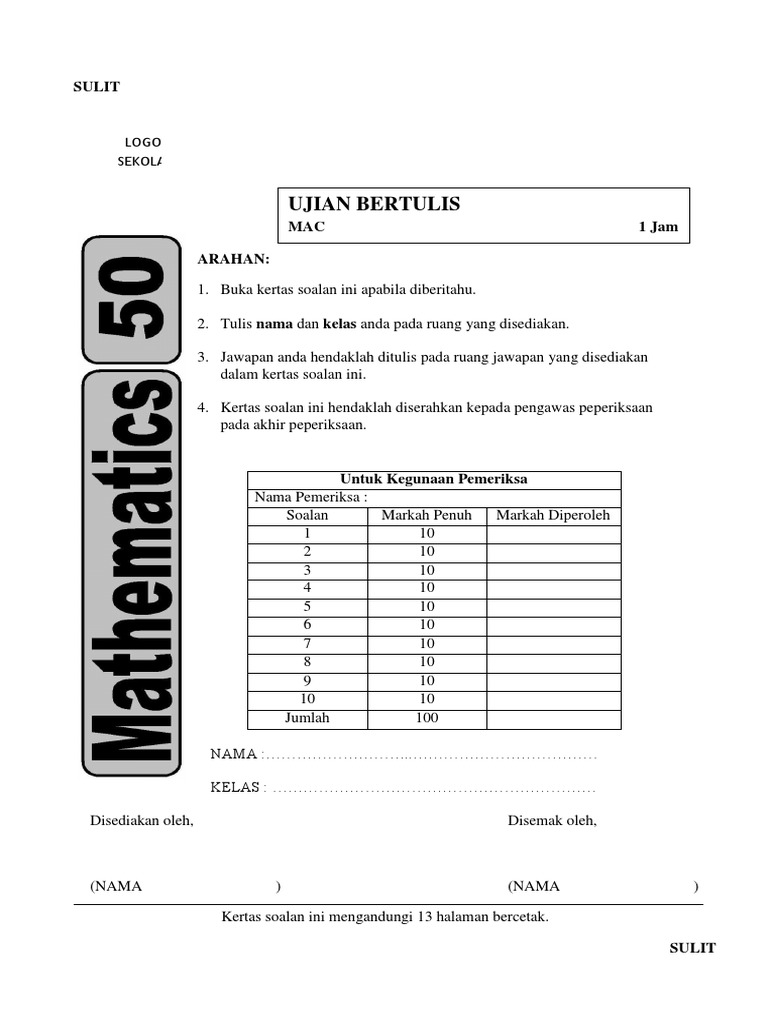 Soalan Ujian Bulan Mac Tingkatan 2 2020 merupakan salah satu peperiksaan yang ditakbir oleh pihak sekolah. Koleksi Soalan Peperiksaan Soalan Percubaan Soalan KBAT Soalan Ujian Nota Modul Soalan Latihan Tingkatan 3. Di peringkat sekolah menengah juga peperiksaan turut diadakan.